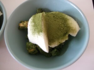 石車クランブルにレアチーズケーキ乗せて抹茶かけただけですが